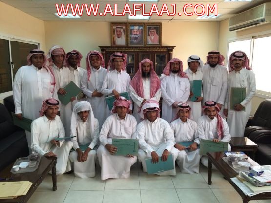 مدير المعهد الشيخ محمد بن فلاح الحقباني والشيخ عبدالعزيز المفلح والشيخ راشد الحقباني التقطا صورة تذكارية مع أبنائهم الطلاب وموجهينهم بعدة نصائح أبوي .