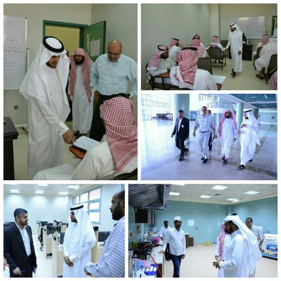واثناء الزيارة شدد سعادته على الالتزام بالجداول الدراسية الموجودة على البوابة الإلكترونية ووضعها على القاعات الدراسية ومكاتب أعضاء هيئة التدريس، كما طالب أعضاء هيئة التدريس بالالتزام التام بالمناهج والكتب المقررة في توصيف المقررات ، كما حث سعادته أعضاء هيئة التدريس بالظهور بالمظهر اللائق أمام الطلاب حفاظاً على هيبة عضو هيئة التدريس ، ثم اختتم جولته التفقدية بزيارة كافتريا الكلية وأبدى بعض الملاحظات على طريقة عرض الأصناف الغذائية، كما وجه سعادته بالالتزام بالاشتراطات الصحية في طريقة العرض للأغذية والمشروبات الموجودة لدى الكافتريا.