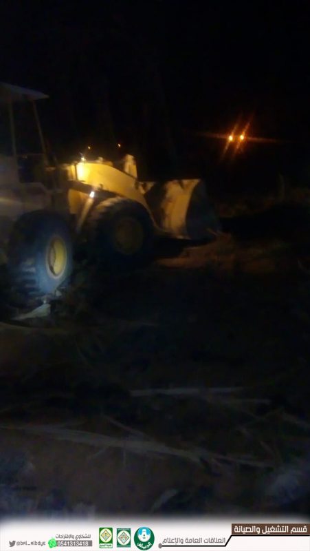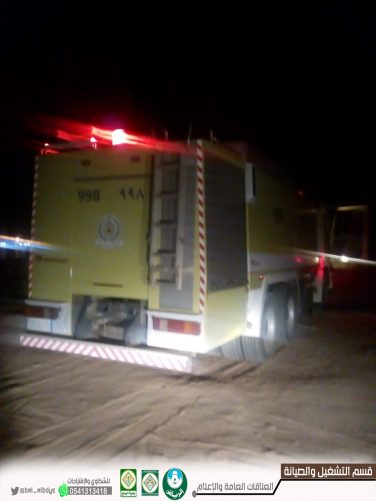 حيث تم اخماد الحريق بالتعاون مع معدات بلدية البديع التي تواجدت في الموقع.