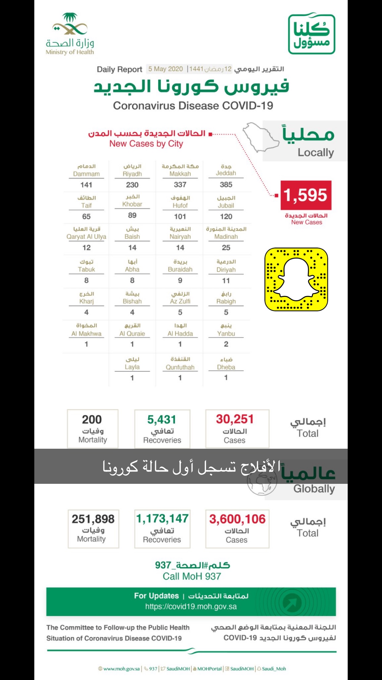 سجلت مدينة ليلى بمحافظة الأفلاج أول إصابة في حالة كورونا لمواطن سعودي