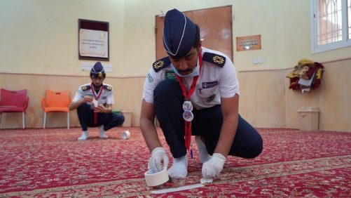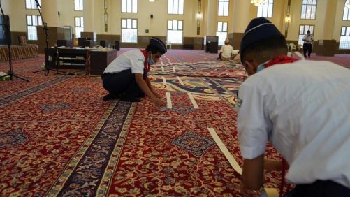 وتأتي المبادرة بالتعاون مع إدارة مساجد الأفلاج يقوم خلالها ٣٥ متطوعاً من الفرق الكشفية وفريق بناء التطوعي التابعة للجنة الأفلاج على مدار ثلاثة أيام بتغطية جميع مساجد وجوامع ليلى بوضع ملصقات للتباعد بين المصلين، وفقاً للإجراءات التي تؤكد ترك مسافة بين كل مُصلٍّ بمقدار مترين، وفراغ بمقدار صف لكل صفين، ورفع المصاحف.