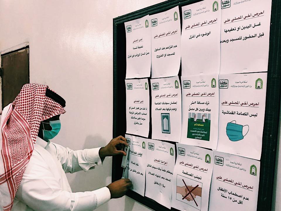 بالتنسيق مع إدارة الأوقاف والمساجد بمحافظة الافلاج قام مركز النشاط الاجتماعي بالنايفية التابع للجنة تنمية الأفلاج بتهيئة المساجد بمركز النايفية استعداداً لإقامة الصلوات وتم وضع لوحات إرشادية تحث المصلين على الألتزام بمسافات التباعد الاجتماعي داخل المسجد وذلك للحد من انتشار فايروس كورونا.