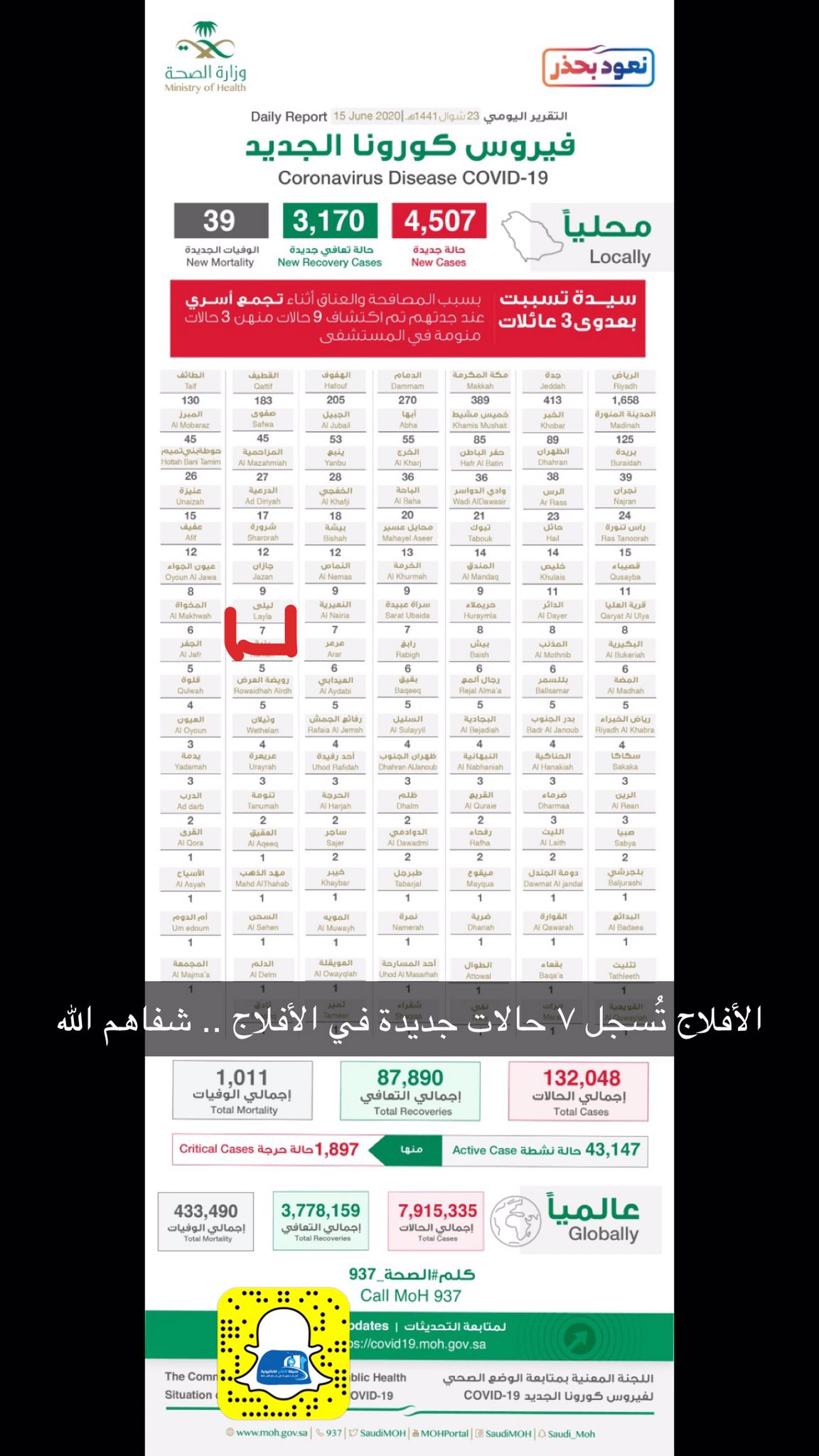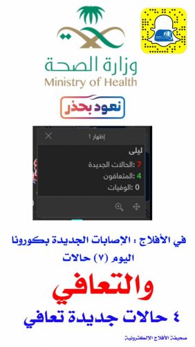 وأكدت الوزارة تسجيل 4 حالات تعافي ليرتفع عدد المتعافين في الأفلاج إلى 21 حالة  .
