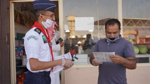 وقام 35 متطوعاً من كشافة اللجنة وفريق بناء التطوعي بلجنة الأفلاج بتوزيع بروشورات إرشادية وتوعوية بلغات متعددة على العمالة في الصناعية والأسواق والشركات يتضمن الإجراءات الاحترازية والتعليمات الوزارية وطرق الوقاية من انتشار فيروس كورونا وأعراضه وسبل مكافحته ومدى خطورته بهدف تعزيز الجانب الوقائي للتصدي لهذا الوباء ومكافحته لمنع انتشاره.