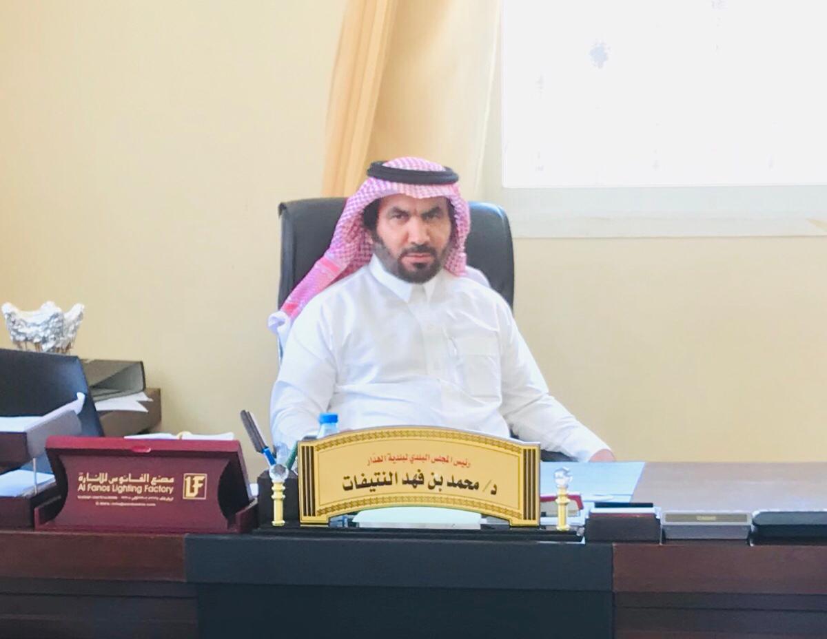 أكد رئيس المجلس البلدي لبلدية الهدّار  عضو هيئة التدريس المتعاون بكليات جامعة الأمير سطام بن عبدالعزيز  بالأفلاج الدكتور محمد بن فهد النتيفات المملكة العربية السعودية تعيش هذا اليوم المبارك فرحة عامرة عامة لمدنها وقراها وهجرها، بمناسبة مرور العام ( ٩٠ ) على ذكرى توحيدها على يد المؤسس المغفور له بإذن الله الملك عبدالعزيز طيب الله ثراه؛ ومن بعده أبنائه البررة الذين أكملوا مسيرة الرخاء والتنمية.