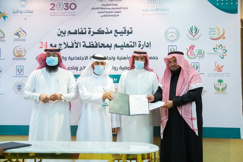 وقّعت إدارة تعليم الأفلاج، اليوم، 24 مذكرة تفاهم مع جمعيات خيرية وأهلية ولجان تنمية اجتماعية ولجنة ثقافية ومفوضية رواد كشافة الأفلاج ونادي التوباد، كما كرّمت 170 متطوعًا بتلك الجهات.