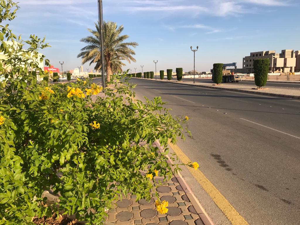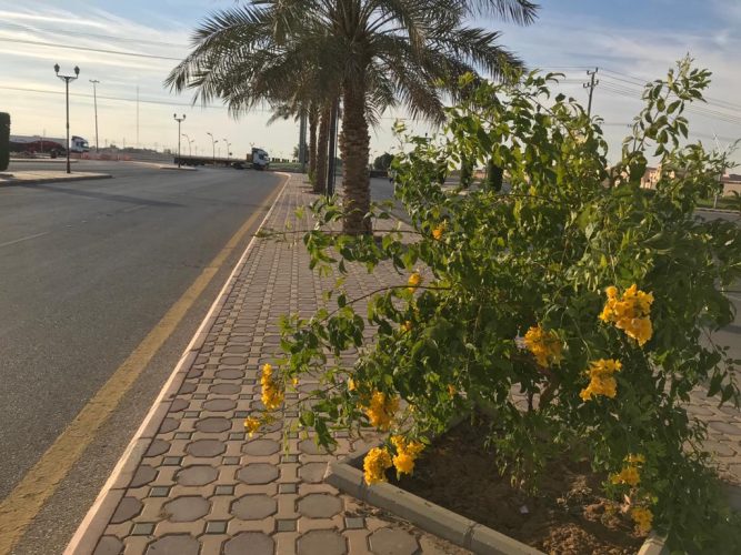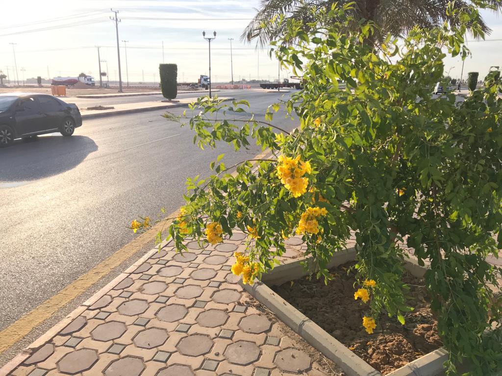 في منظرٍ بديع زهور التيكوما تزين طريق الملك فهد بالأفلاج..