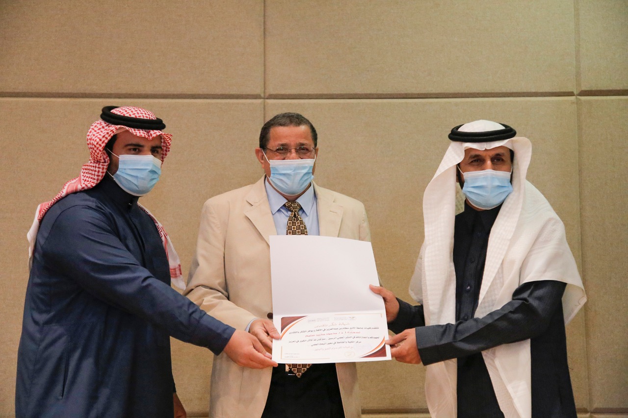 وفي ختام الحفل تم تكريم اعضاء هيئة التدريس المتميزين بالبحث العلمي.