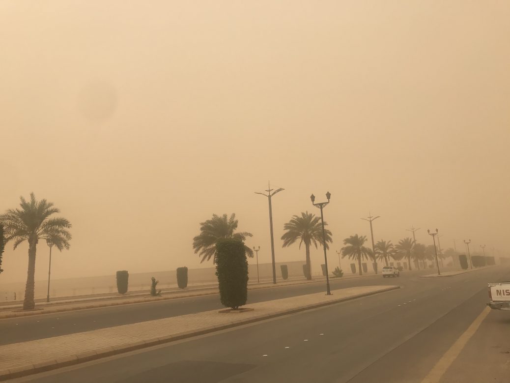 الرياح الشمالية الباردة تعصف بأجواء الأفلاج وتثير الغبار ..