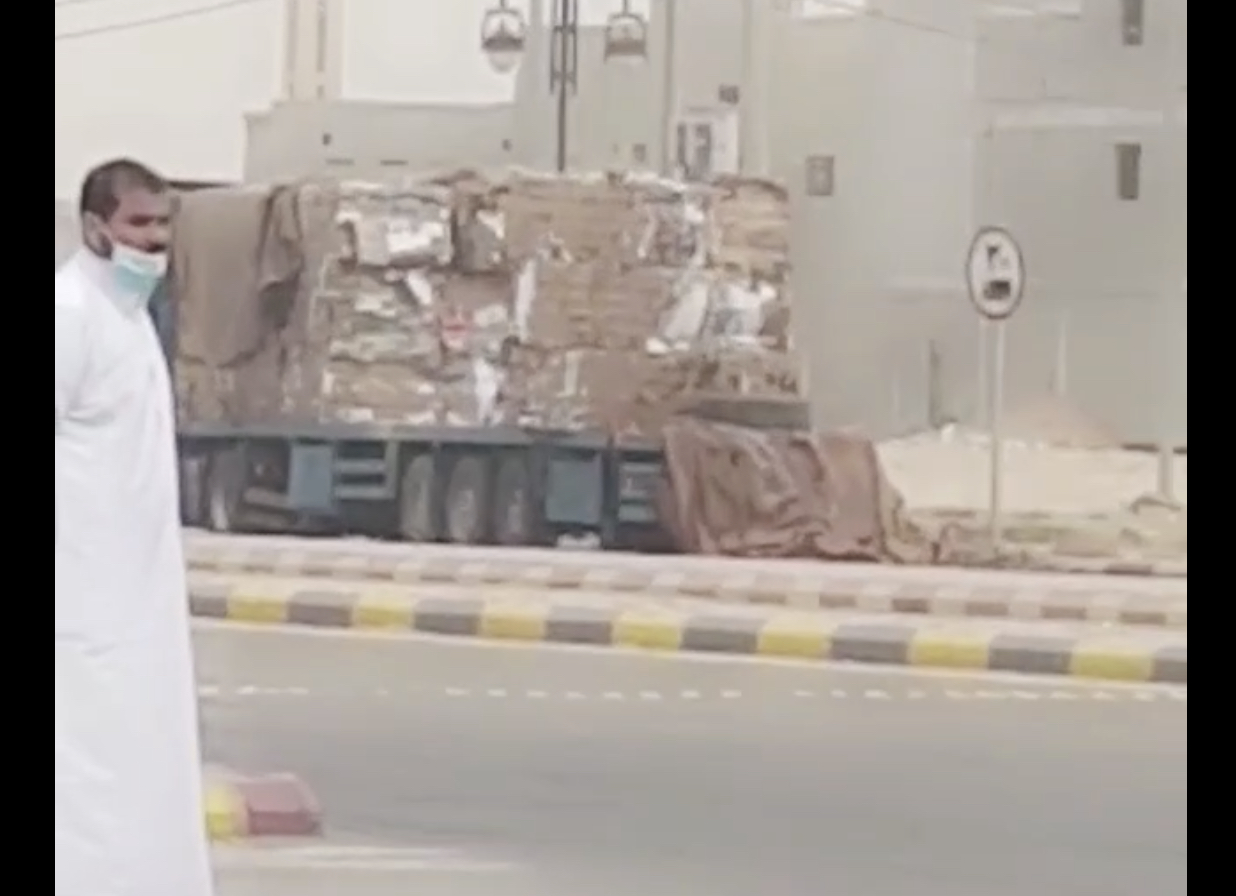 تفاجأ قائد شاحنة في محافظة الأفلاج من وجود أدخنة في أخر الشاحنة في كمية كراتين “طبلية”
