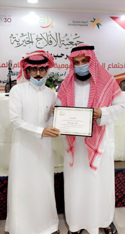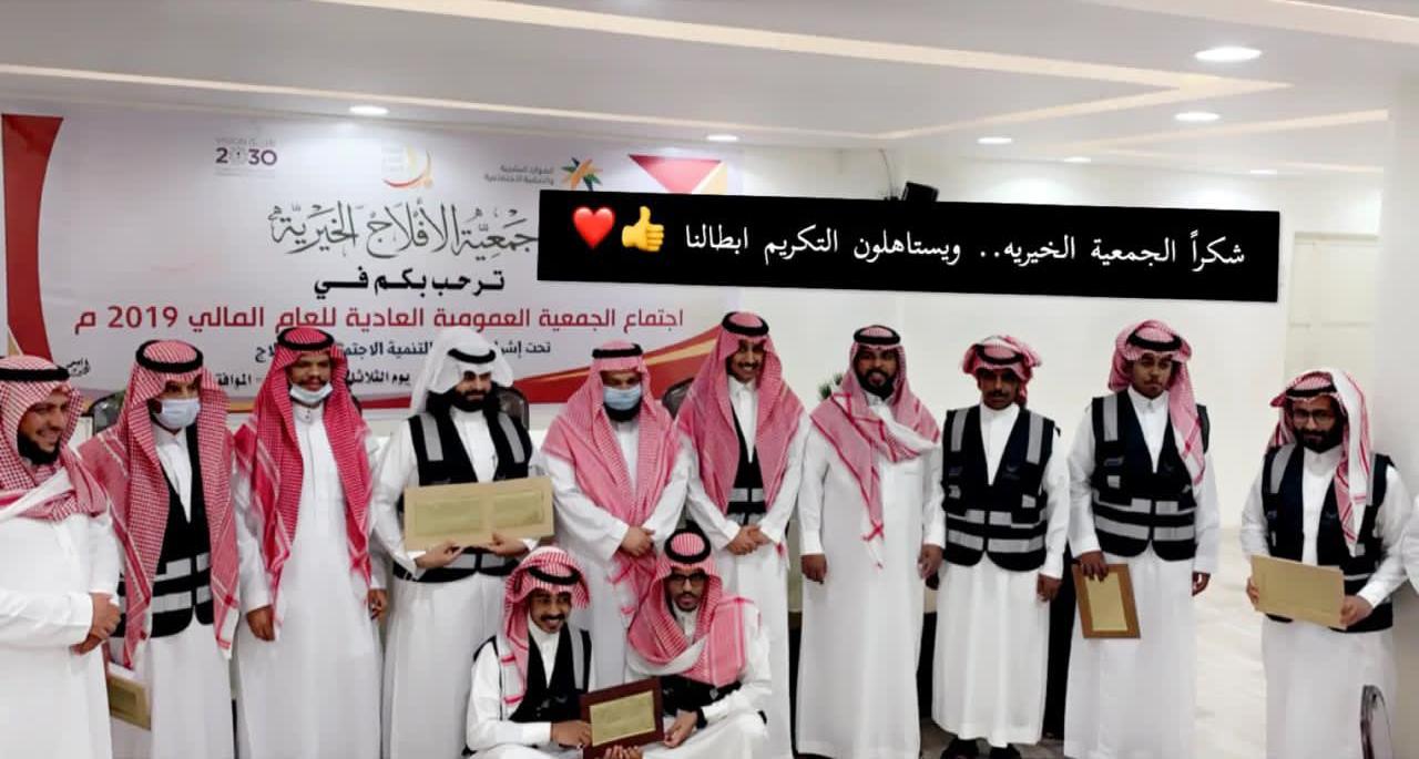 قامت جمعية الأفلاج الخيرية بقيادة رئيسها الأستاذ عبدالرحمن ابو دجين وأمين عام الصندوق الأستاذ راشد العصفور بتكريم اعضاء فريق غوث للبحث والإنقاذ بالمحافظة بقيادة الاستاذ فهد بن درمان ال عمار.