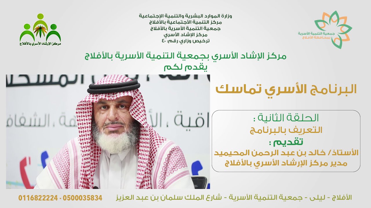 سلسلة برنامج تماسك (الحلقة الثانية التعريف بالبرنامج) المشرف على البرنامج الأستاذ/خالد بن عبد الرحمن المحيميد