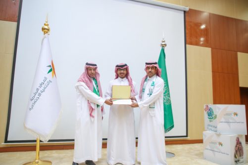 وفي ختام الحفل شاهد الجميع عرض مرئي مقدم من قسم العلاقات العامة اشتمل على منجزات المملكة ، وتنمية روح الولاء والانتماء للقيادة ولهذا الوطن الشامخ .