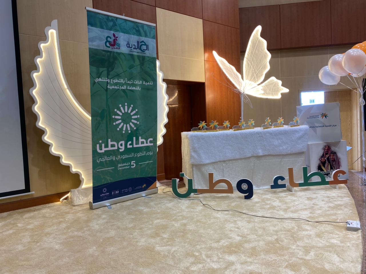 تحت عنوان عطاء وطن احتفت جمعية التنمية الأهلية بالخالدية بمتطوعيها بمناسبة اليوم السعودي والعالمي للتطوع بالشراكة مع مركز التنمية الاجتماعية وجمعيات التنمية الاهلية والخيرية بالافلاج يوم أمس الأربعاء على مسرح مجمع فروع وزارة الموارد البشرية و التنمية الاجتماعية ، تم خلاله تكريم المتطوعين وأعضاء فريق روائع المتميزين في العمل التطوعي وعرض مصور لمبادرات وأنشطة الفريق التطوعيه .