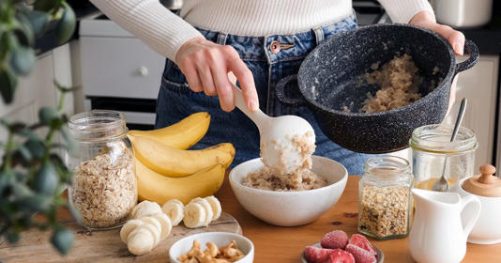 أصبح فطور الشوفان خياراً شائعاً بالنسبة للكثير من الأشخاص. يوفر دقيق الشوفان الكثير من الفوائد للجسم. ما يميّز هذا النوع من الدقيق هو إحتوائه على نسبة عالية من الألياف. تساعد هذه الألياف على الشعور بالشبع لأطول وقت ممكن. إذا كنتم ترغبون بتحضير فطور الشوفان فأضيفوا إليه القليل من العسل للتحلية مع الفواكه المتنوعة مثل التفاح، الموز الفراولة وغيرها.