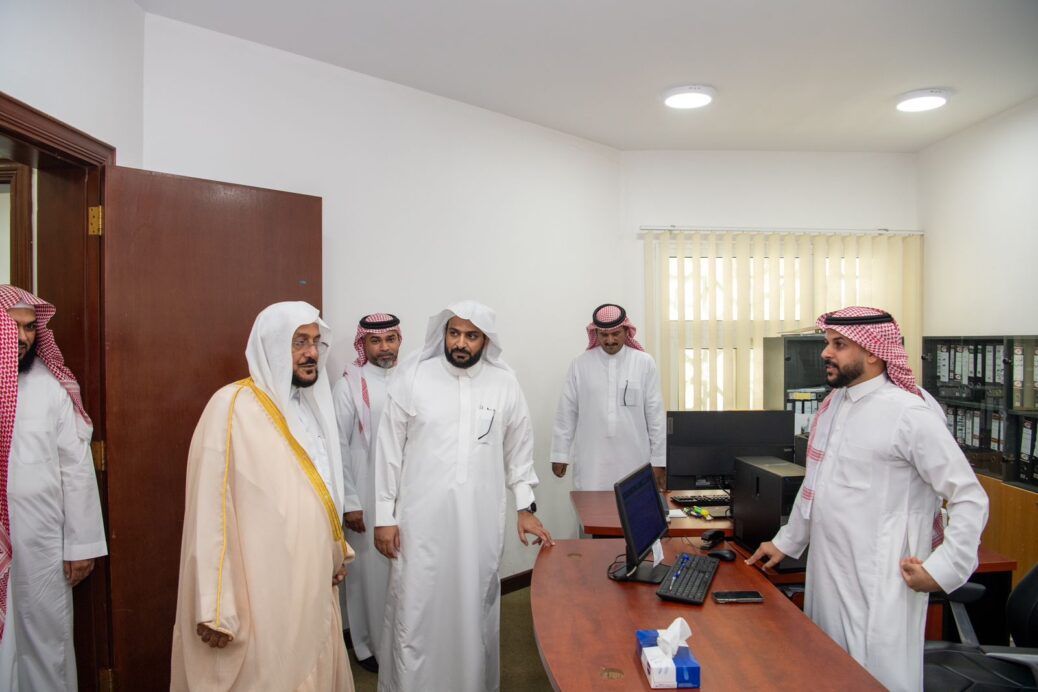 عقب ذلك تجول معاليه بأقسام الإدارة واطلع على سير العمل وأبرز المشروعات والأنشطة والبرامج التي تنفذها الإدارة، واستمع إلى شرحٍ حول الخدمات المقدمة، كما تم تقديم عرض مرئي لمعاليه يحتوي على معلومات وأرقام لمنجزات وأعمال الإدارة في المحافظة في إطار رسالتها لخدمة بيوت الله والعناية بها، والدعوة إلى الله وفق منهج الوسطية والاعتدال.