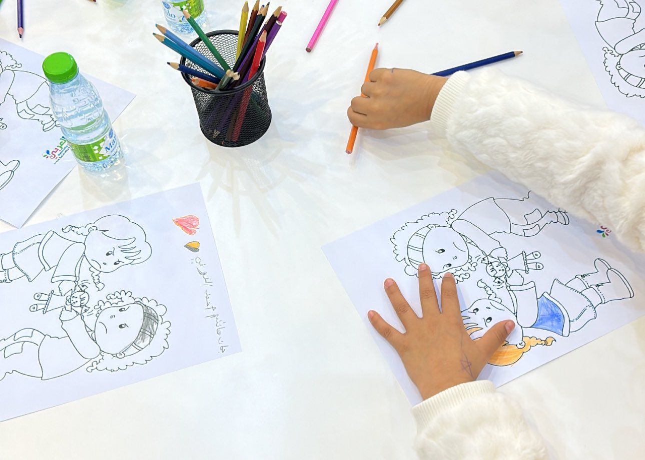 وشملت البرامج التي نفذت للأطفال من 4 إلى 8 سنوات برامج حركية ومسابقات قيم تربوية ألعاب تفاعلية قصة ومعلومة والقراءة والرسم بهدف تحفيز الأطفال على استكشاف مجالات جديدة وتطوير مهاراتهم وتعزيز الثقة بالنفس والتعبير عن أنفسهم بواسطة الرسم .