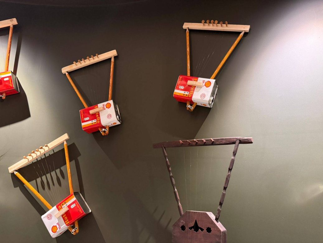 وفي الجهة المقابلة، استعرض الجناح آلة «السمسمية» الموسيقية التي انتقلت إلى شمال السعودية من السودان ومصر؛ حيث استخدم الطلاب خيوط الصيد لصنع أوتارها وعلب زيت السيارات وخشب المكانس لتشكيل عناصرها الأخرى.