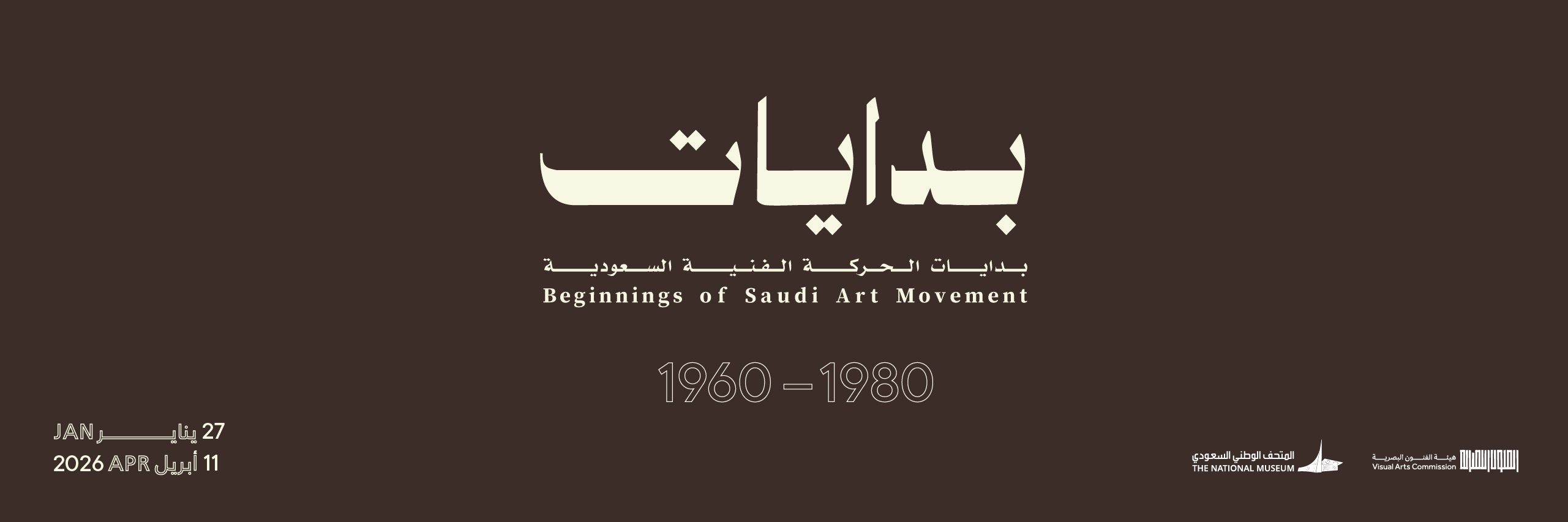 أعلنت هيئة الفنون البصرية عن تنظيم معرض “بدايات الحركة الفنية السعودية 2026″، الذي يستضيفه المتحف الوطني السعودي في الرياض، خلال الفترة من 27 يناير وحتى 11 أبريل 2026م (الموافق 8 شعبان إلى 23 شوال 1447هـ). ويأتي المعرض كرحلة بصرية توثق الجذور التأسيسية للفن التشكيلي السعودي الحديث.