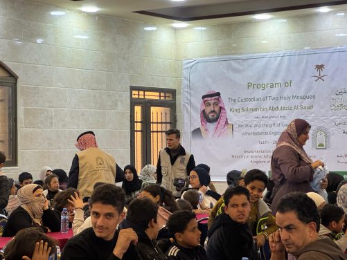 في مشهدٍ إنسانيٍ يجسّد عمق الروابط الأخوية بين المملكة العربية السعودية وإخوانهم في فلسطين، نظّمت وزارة الشؤون الإسلامية والدعوة والإرشاد مائدة إفطار رمضانية استفاد منها (500) يتيمٍ من اللاجئين الفلسطينيين في مخيم البقعة بالمملكة الأردنية الهاشمية، وذلك ضمن برنامج خادم الحرمين الشريفين لتفطير الصائمين الذي تنفذه الوزارة خلال شهر رمضان المبارك في عددٍ من دول العالم.