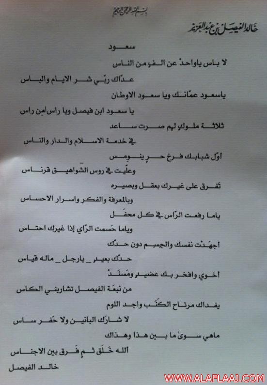 قصيدة الأمير خالد الفيصل في شقيقه الأمير سعود الفيصل وزير الخارجيه السعودي